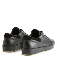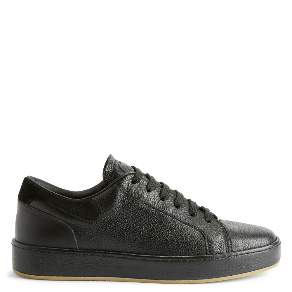 Product Details Low-top lace-up sneakers in leather with tonal covered rubber sole. - Men's sneakers - Black leather and velour - High-frequency 'Graffio' processing on label - Hot-stamped 'Logo Lettering' on the back - Black cotton laces - Rubber sole with logo, covered in black leather ORIGIN: ITALY COLOR: BLACK