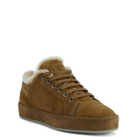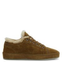 Product Details Suede lace-up low-top sneakers with sheepskin inner lining and tone-on-tone coated rubber sole. - Men's sneakers - Light brown suede - Light brown sheepskin inner lining - High-frequency detailing on the label - Light brown laces and aged silver-coloured metal eyelets - Rubber sole with logo, covered in light brown suede leather ORIGIN: ITALY COLOR: BROWN