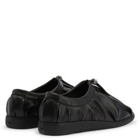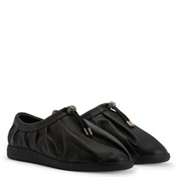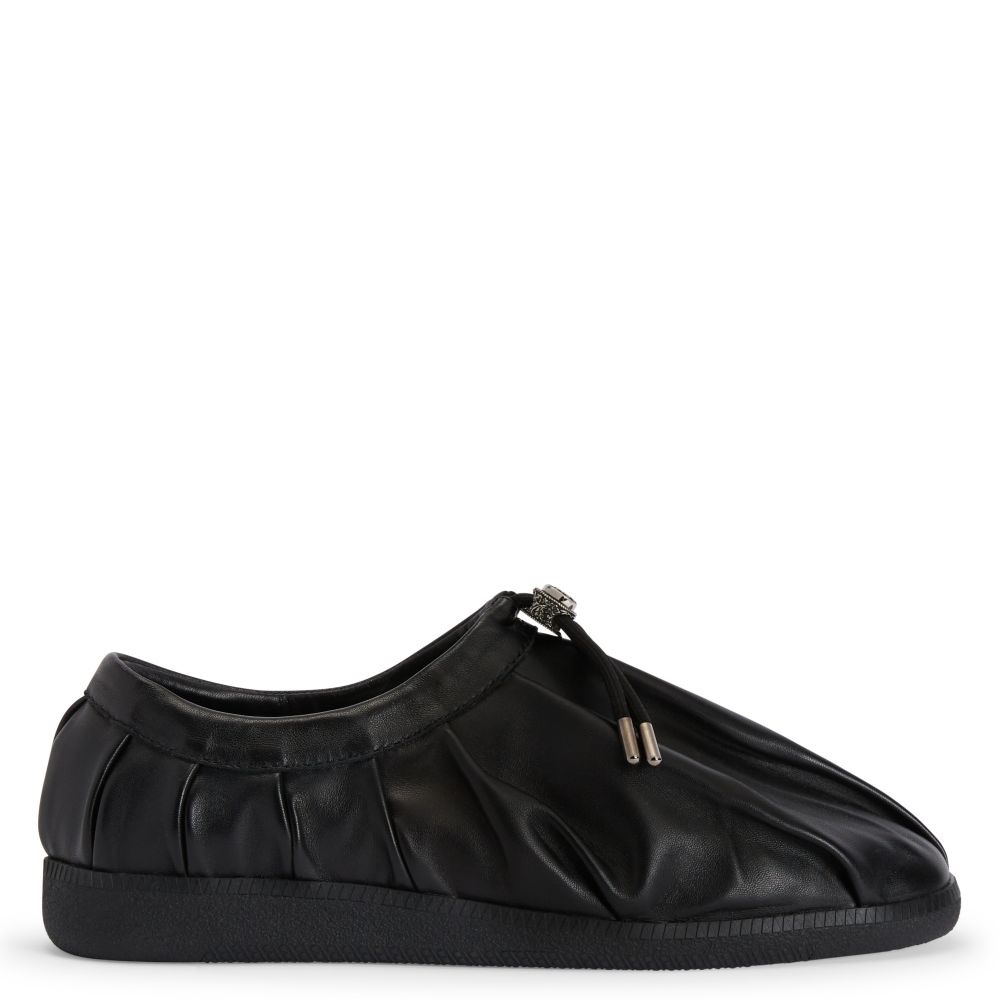 Product Details Leather low-top sneakers with a drawstring, metal aglets and stoppers, and a rubber sole. - Men's sneakers - Black leather - Gunmetal hardware - Black laces - Black rubber sole with logo ORIGIN: ITALY COLOR: BLACK