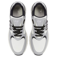 Product Details Low-top sneakers crafted from grey leather with black-and-white inserts, featuring black and white rubber 'GZ' side detail and white 'Signature' stitching on the tongue; the off-white TPU sole with a black tread, detailed by shark fin-shaped elements, completes the high-tech design of these running-inspired shoes. Grey leather with black-and-white leather inserts Black rubber 'GZ' detail with white logo DELETE White 'Signature' stitching on the tongue Off-white TPU sole with black tread Made in Italy