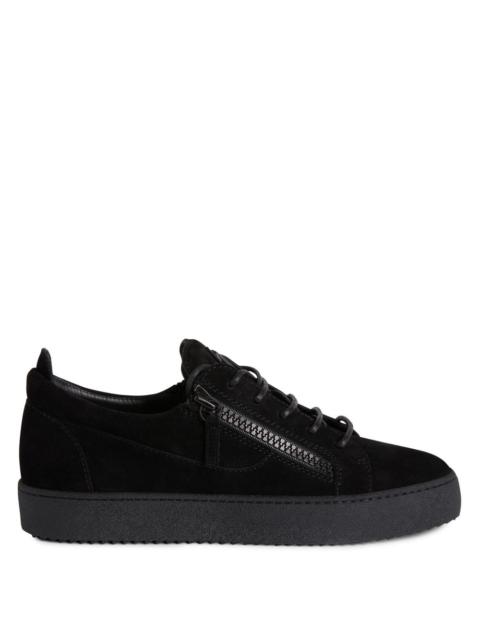 Product Details Low-top sneakers crafted from black leather, mesh and golden mirror-effect synthetic fabric details, featuring matching laces, white rubber ‘GZ’ side detail and black ‘Signature’ stitching on the tongue; the black TPU sole with a matching tread, detailed by shark fin-shaped elements, completes the high-tech design of these running-inspired shoes. Black leather and mesh, golden mirror-effect synthetic fabric details (43% PU; 30% PES; 19% TPU; 8% LAMINA) Black rubber 'GZ' with logo Black 'Signature' stitching on the tongue Black TPU sole with black tread and golden detail Made in Italy
