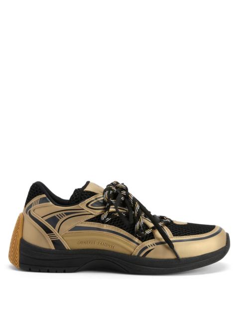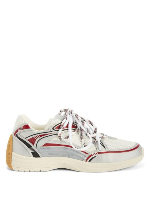 Product Details Low-top lace-up sneakers in technical fabric with double lacing, rubber sole and tread. - Men's sneakers - Technical fabric and black mesh-effect technical fabric - Grey high frequency-processed Signature on the label and light grey/dark grey screen print on the black technical fabric upper - Black TPU accessory bearing the Giuseppe Zanotti logo at the side - Double lacing: one monochrome black and the other with black base and light grey and dark grey stripes - Black rubber sole with amber tread and logo ORIGIN: ITALY COLOR: BLACK