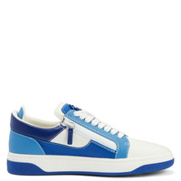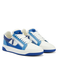 Product Details Sneakers crafted from white, cornflower-blue and air force blue leather, with white cotton laces and a matching rubber soles with cornflower-blue treads, featuring cornflower-blue lacquered metal 'Signature' hardware and white plastic side zippers. White, cornflower-blue and air force blue leather Cornflower-blue lacquered metal 'Signature' hardware White cotton laces White plastic zippers White rubber sole, cornflower-blue tread with logo Made in Italy