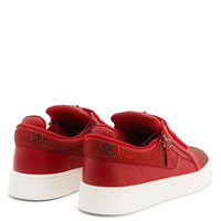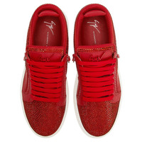 Product Details These low-top sneakers, crafted from red synthetic fabric with a suede effect, feature cotton laces, matching lacquered metal ‘Signature’ detail on the tongue, matching plastic side zippers and a matching rhinestones embroidery on the upper, rubber soles give the design a perfect finish. Men's sneakers Suede-effect red synthetic fabric and leather Red rhinestones embroidery on the upper Lacquered red metal 'Signature' Red cotton laces Rubber sole with logo Origin Italy Color Red More Less