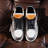 Product Details Low-top lace-up sneakers in leather with two side zips and two-tone rubber sole. - Men's sneakers - Black and white leather with light brown leather details - Hot-stamped Signature on the label - Black laces - Off-white zip - Off-white rubber sole with black tread and logo ORIGIN: ITALY COLOR: BLACK