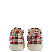 Product Details Low-top lace-up sneakers in tartan suede with two side zippers and rubber sole. - Upper: 100% ACRYLIC fabric - Lining: 100% polyester - Insole: calfskin - Sole: Rubber ORIGIN: ITALY COLOR: MULTICOLOR