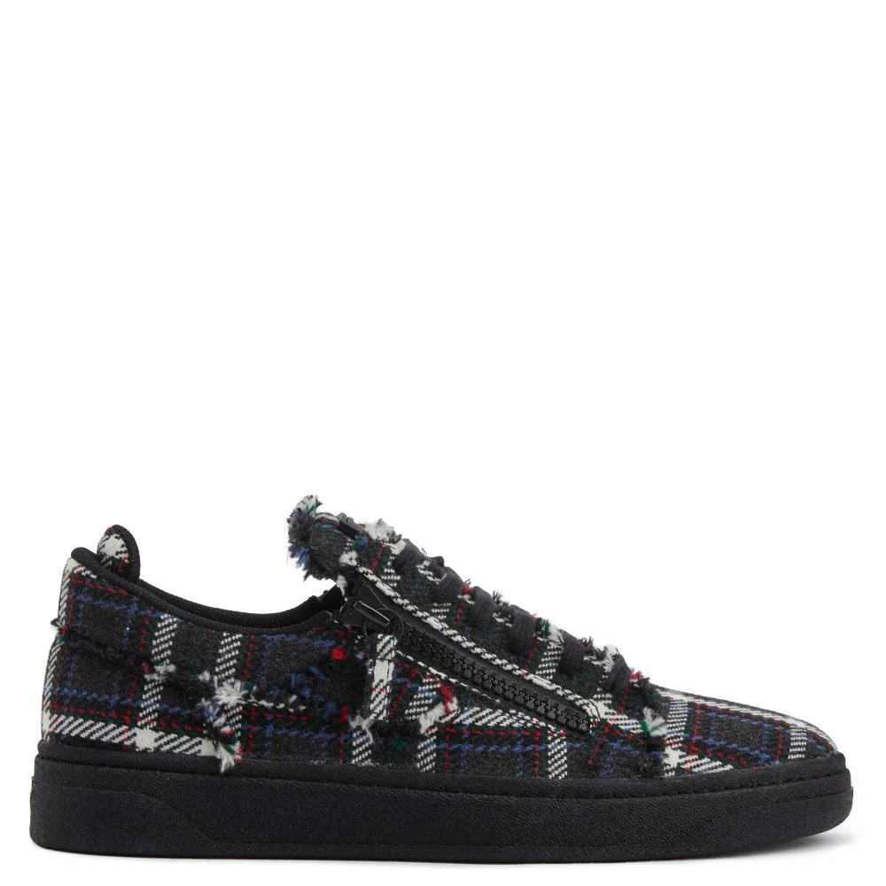 Product Details Low-top lace-up sneakers in tartan fabric with two side zippers and rubber sole. - Mens sneakers - Multicolored tartan fabric and black base - Black PVC Signature label - Black lacing - Black zippers - Black rubber sole with logo ORIGIN: ITALY COLOR: BLACK