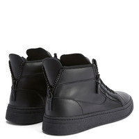 Product Details High-top lace-up sneakers in leather with two tonal side zips and rubber sole. - Men's sneakers - Black leather - Black lacquered metal 'Signature' hardware - Black cotton lacesper - Black rubber sole with logo ORIGIN: ITALY COLOR: BLACK