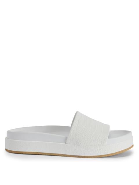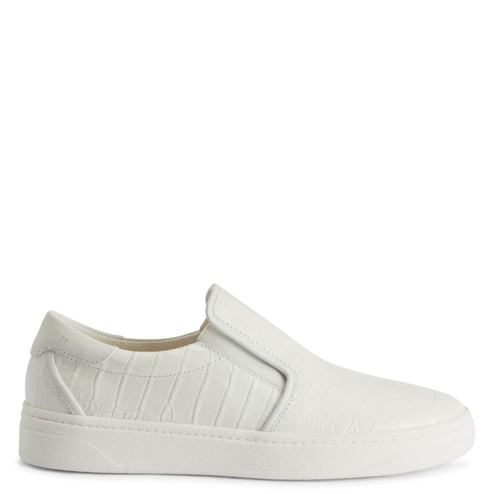 Product Details These slip-on sneakers, crafted from white leather and crocodile-print leather with rubber soles and matching technical fabric inner lining, feature a debossed golden ‘GZ’ logo on the back of the upper. - Men's sneakers - White crocodile-print leather and white leather - Debossed golden 'GZ' logo on the back - White technical fabric inner lining - White rubber sole with logo - Made in Italy ORIGIN: ITALY COLOR: WHITE