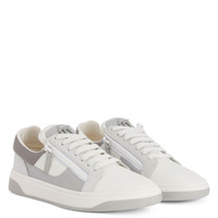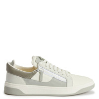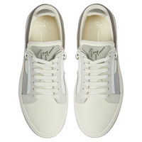 Product Details Low-top lace-up sneakers in leather with two side zips and two-tone rubber sole. - White, light-grey and dark-grey leather - Grey lacquered metal 'Signature' - White cotton laces - White rubber sole and grey tread with logo ORIGIN: ITALY COLOR: GREY