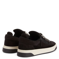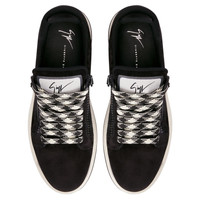 Product Details Low-top sneakers crafted from black velour with matching laces with a diamond-shape pattern, featuring off-white rubber soles with black treads, contrasting 'Signature' labels on the tongues and black plastic side zippers. Men's sneakers Black velour Off-white fabric 'Signature' label with black trims Off-white cotton laces with black diamond-shape pattern Black plastic zipper Off-white rubber sole, black tread with logo Made in Italy