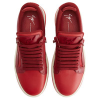 Product Details These low-top sneakers, crafted from red and burgundy leather, feature matching cotton laces, a burgundy lacquered metal 'Signature' detail and a red rubber 'Graffio' applique on the back of the upper; an off-white rubber sole with red tread gives the design a perfect finish. - Men's sneakers - Red and burgundy leather - Burgundy lacquered metal 'Signature' - Burgundy cotton laces - Red rubber 'Graffio’ applique - Off-white rubber sole and red tread with logo - Made in Italy ORIGIN: ITALY COLOR: RED