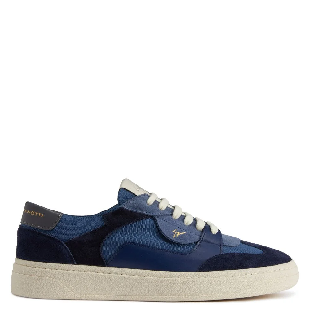Product Details Low-top lace-up sneakers in multiple materials and colors, with rubber sole. - Mens sneakers - Blue and light blue suede leather and leather, light blue technical fabric and gray leather detail on the back of the upper - Golden etched detail and punched golden logo lettering on the back of the upper - Signature label with off-white fabric base and rubber logo - Off-white lacing - Off-white rubber sole with logo ORIGIN: ITALY COLOR: BLUE