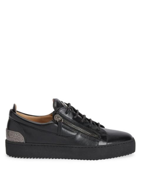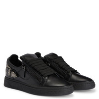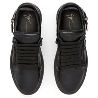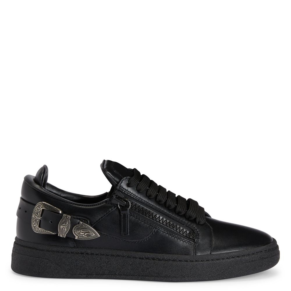 Product Details Low-top leather lace-up sneakers with two side zippers, a buckle detail in inlaid metal, and a rubber sole. - Men's sneakers - Black leather - Signature embossed on the label - Gunmetal hardware - Black laces - Black rubber sole with logo< ORIGIN: ITALY COLOR: BLACK