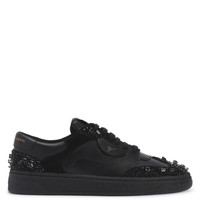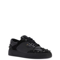 Product Details Low-top suede and leather sneakers with cotton laces, gold-colored logo lettering printed on the heel, bead and rhinestone embroidery, and tone-on-tone rubber sole. - Upper: 40% goatskin suede, 60% calfskin - Lining: 100% polyamide - Insole: calfskin - Sole: Rubber ORIGIN: ITALY COLOR: BLACK