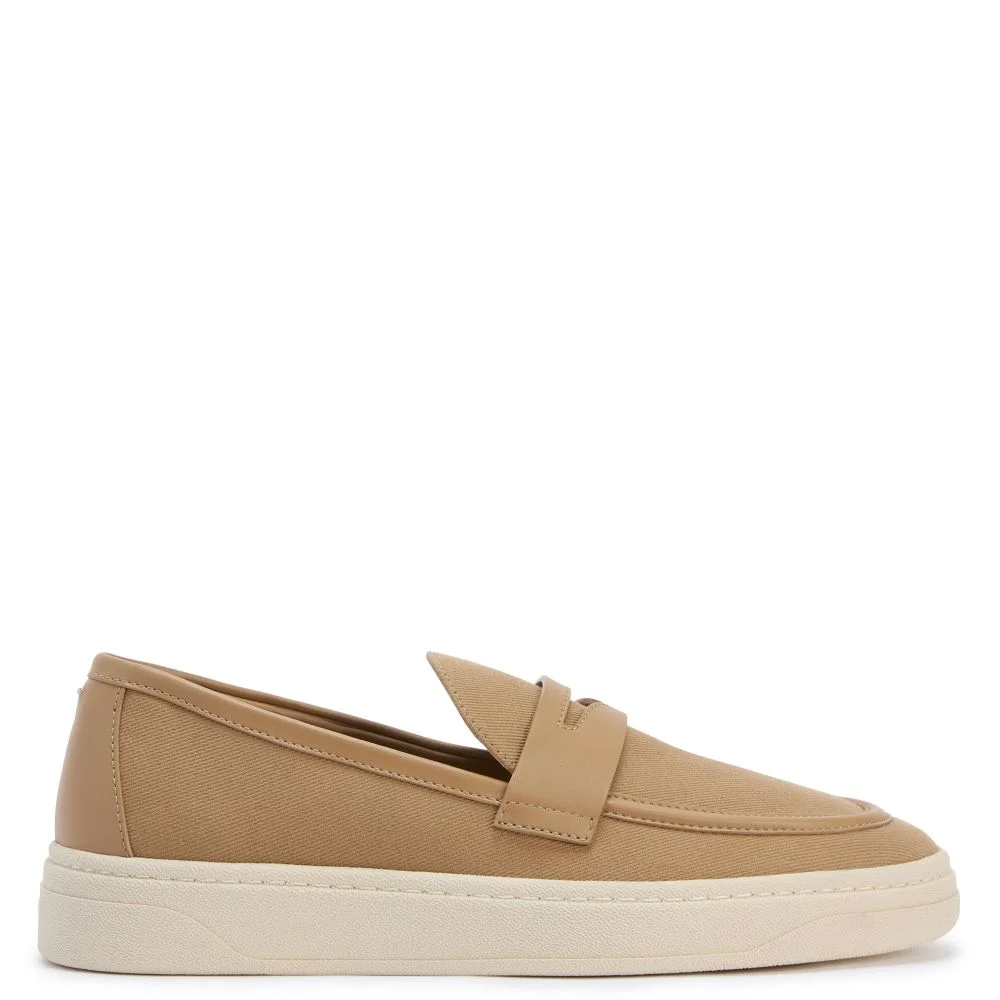 Product Details Canvas slip-ons with penny loafer bar, leather heel detail and trim, and rubber sole. - beige cotton - tone-on-tone leather details - palladium-colored metal stitch detail - rubber sole ORIGIN: ITALY COLOR: BEIGE