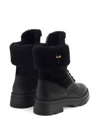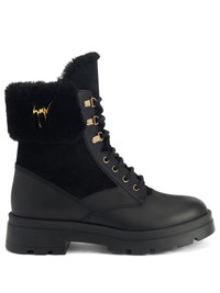 Jaure combat boots Highlights - Black - Leather - Logo plaque - Shearling lining - Front lace-up fastening - Round toe - Chunky rubber sole Made in Italy Composition Outer: Leather 100% Sole: Rubber 100% Lining: Sheep Skin/Shearling 100% SIZE & FIT Measurement HEEL 1.77 in(4.5 cm)