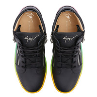 Product Details Mid-top sneakers crafted from black leather and patent leather with matching cotton laces, featuring a silver metal 'Signature' detail on the tongue and silver side zippers fastenings on the upper; a semitransparent, multicoloured rubber sole gives the design a perfect finish. Black leather and black patent leather Silver metal 'Signature' detail Black cotton laces Semitransparent and multicoloured rubber sole with logo Made in Italy