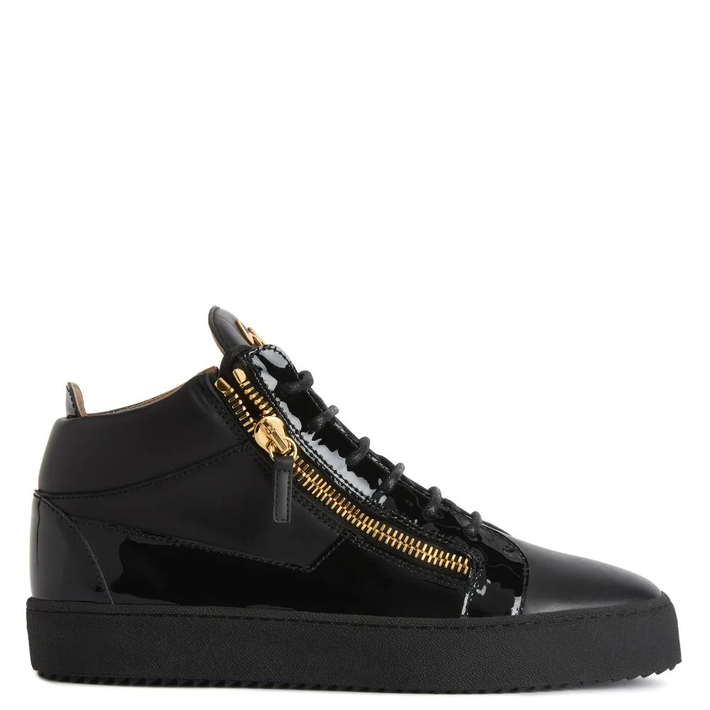 Product Details Mid-top lace-up sneakers in leather and patent leather with two side zippers and rubber sole. - Upper: 85% calfskin, 15% patent calfskin - Lining: calfskin - Insole: calfskin - Sole: Rubber ORIGIN: ITALY COLOR: BLACK