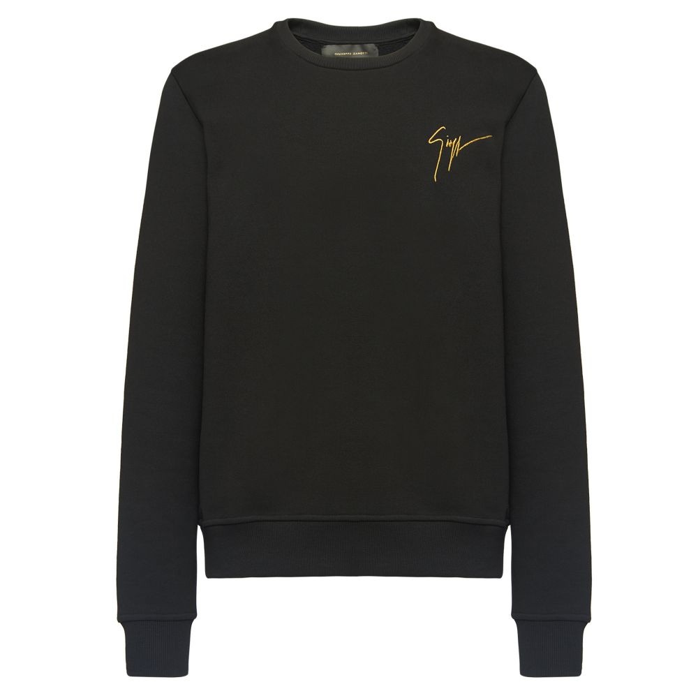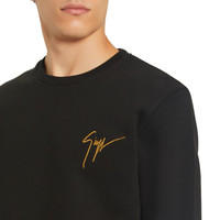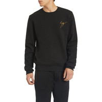 Product Details "Living Room" is a timeless capsule collection inspired by Giuseppe Zanotti's life at home during quarantine. This understated crew-neck pullover in supple black cotton features the designer's signature emblazoned on the upper chest corner. It is finished with ribbing at the hem, cuffs and collar. The collection comes in environmentally friendly packaging that is both recyclable. Black cotton Signature Made in Italy