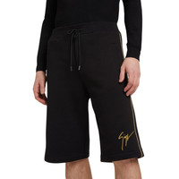 Product Details Black cotton sports shorts with drawstring, contrasting golden fabric piping, golden lurex thread-embroidered Signature, side pockets and rear pocket. 100% black cotton Golden fabric piping Golden lurex thread-embroidered Signature Made in Italy