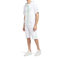 Product Details Sleeveless hoodie crafted from pure white cotton, featuring a fluorescent green 'Signature' print on front and back and a matching two-way zip fastening. 100% white cotton fabric Neon-green 'Signature' print on front and back Neon-green two-way zipper Made in Italy