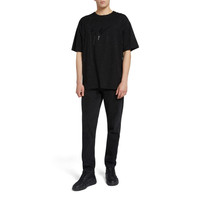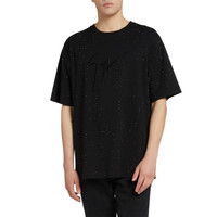 Product Details Crew-neck T-shirt crafted from pure black cotton, featuring a matching rhinestone embroidery and a frontal 'Signature' embroidery. Black fabric (100% CO) Black 'Signature' embroidery Black rhinestones embroidery Made in Italy