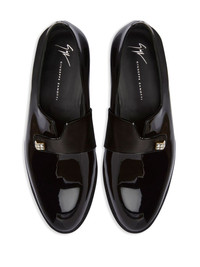 Marty patent leather loafers Highlights - Black - Leather - Patent finish - Crystal embellishment - Almond toe - Button fastening - Branded leather insole - Flat leather sole Made in Italy Composition Sole: Leather 100% Outer: Patent Leather 100% Lining: Leather 100% SIZE & FIT Measurement HEEL 0.78 in(2 cm)