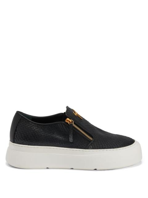 Product Details These slip-ons are crafted from grey leather with a leather inner lining and a contrasting white rubber sole. A golden metal 'Signature' detail applied to the upper and golden metal side zippers give the design a perfect finish. - Grey leather - Golden metal 'Signature' detail and side zippers - Leather inner lining - White rubber sole with logo - Made in Italy ORIGIN: ITALY COLOR: GREY