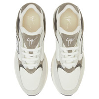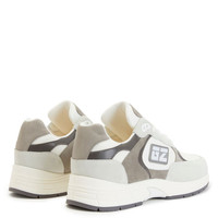Product Details Low-top sneakers crafted from white-and-grey velour with dark-grey and white leather and mesh inserts, featuring grey-and-white rubber ‘GZ’ side detail and white ‘Signature’ stitching on the tongue; the off-white TPU sole with a grey tread, detailed by shark fin-shaped elements, completes the high-tech design of these running-inspired shoes. White-and-grey velour and leather and white mesh Grey rubber 'GZ' detail with white logo White rubber deubré with a matte finish White 'Signature' stitching on the tongue Off-white TPU sole with grey tread Made in Italy