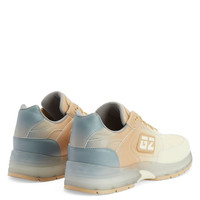 Product Details Low-top sneakers, crafted from faux mixed leather and synthetic mesh fabric with a gradient beige print, featuring a beige-and-white rubber ‘GZ’ side detail, white ‘Signature’ stitching on the tongues and beige eyelets with a matte finish; the transparent TPU soles with beige treads, detailed by shark fin-shaped elements, complete the high-tech design of these running-inspired shoes. Gradient beige print on mixed faux leather (58% PU; 42% PA) and gradient beige print on netting mixed mesh (100% PL) Beige rubber 'GZ' detail with white logo Beige rubber eyelet with a matte finish White 'Signature' stitching on the tongue Transparent TPU sole and beige tread Made in Italy