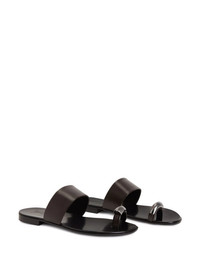 Norbert leather toe-loop sandals Giuseppe Zanotti is an Italian footwear and fashion designer, master in combining different details to create new and sleek designs. A fine example, are these Norbert sandals, constructed from leather the strappy design is adorned with a metal toe. Highlights - Brown leather norbert metal toe sandals from giuseppe zanotti featuring open toe, slip-on style, strap detailing, silver-tone hardware, branded insole and flat leather sole. Made in Italy Composition Outer: Leather 100% Lining: Leather 100% Sole: Leather 100% SIZE & FIT Measurement HEEL 0.39 in(1 cm)
