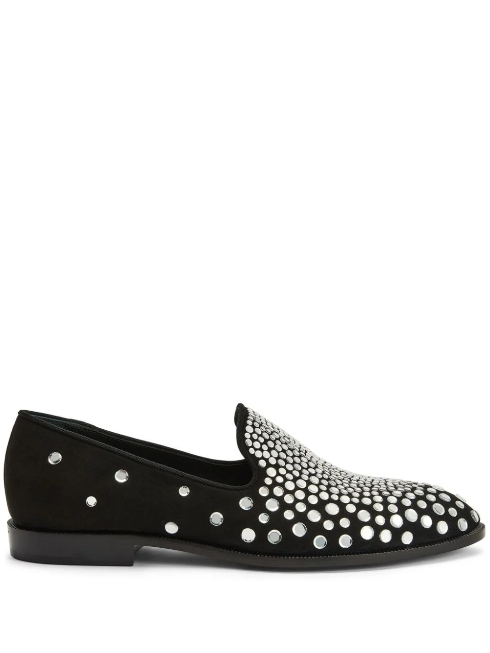 Peghasus crystal-embellished loafers Highlights - Core black - Leather - Crystal embellishment - Logo at the sole - Almond toe - Slip-on style - Branded leather insole - Leather sole Made in Italy Composition Sole: Leather 100% Lining: Leather 100% Outer: Polyurethane 100% SIZE & FIT Measurement HEEL 0.78 in(2 cm)