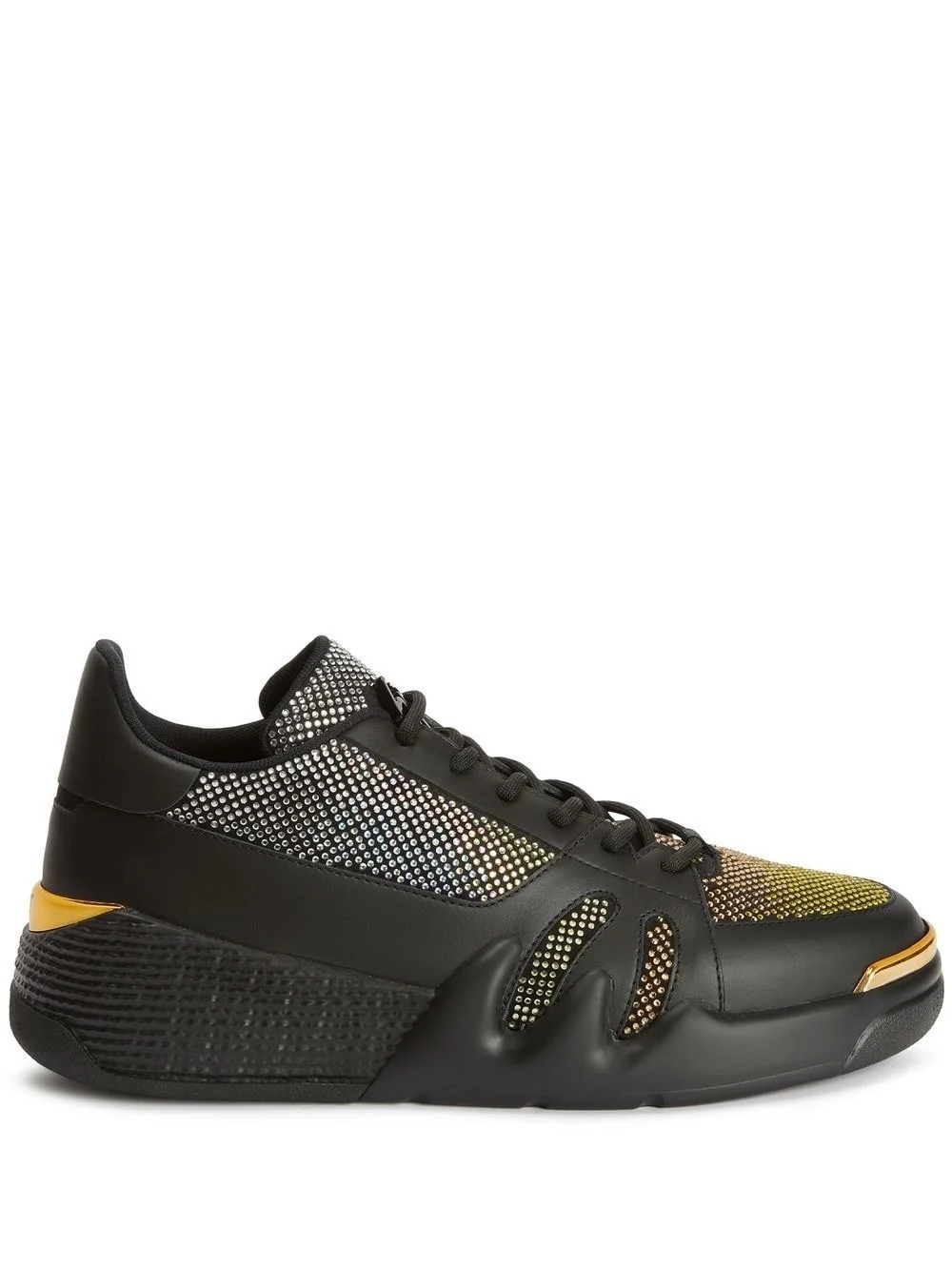 rhinestone low-top sneakers black/multicolour panelled design rhinestone embellishment round toe front lace-up fastening branded insole chunky rubber sole Made in Italy Composition Lining: Fabric 100% Sole: Rubber 100% Outer: Other fibres 100%