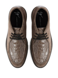 RIVAUX HIGH crocodile-print lace-up boots Highlights - Grey - Suede leather - Crocodile-print leather details - Rubber sole - Ankle height - Lace-up fastening Made in Italy Composition Outer: Calf Suede 80%, Calf Leather 20% Lining: Goat Skin 100% Sole: Rubber 100%