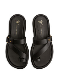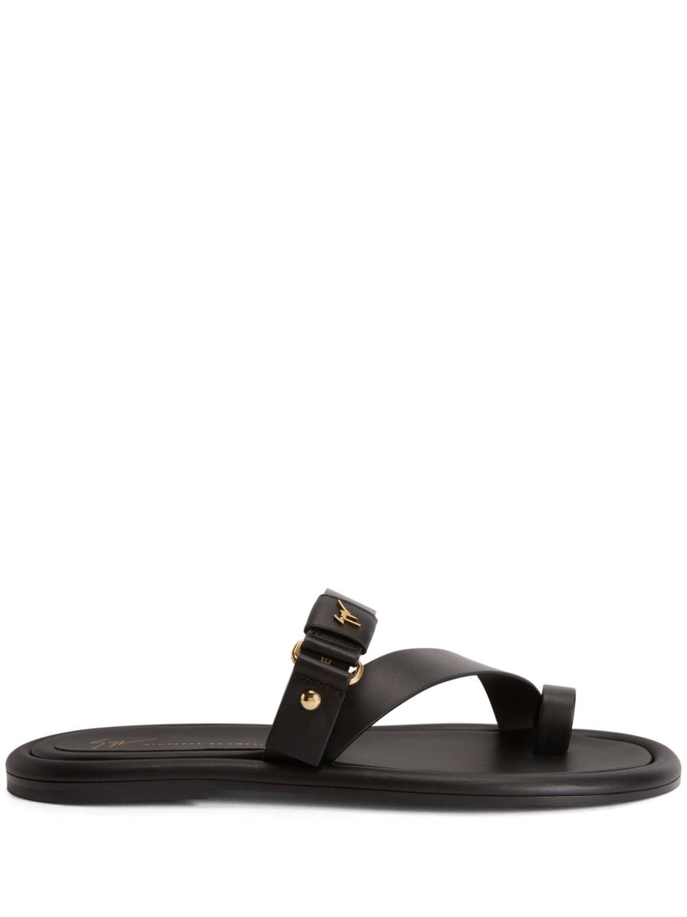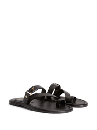 Taanguy leather slides Highlights - Black - Leather - Open toe - Single toe strap - Gold-tone logo lettering - Branded footbed - Flat leather sole - Slip-on style Made in Italy Composition Outer: Leather 100% Sole: Leather 100% Lining: Leather 100% SIZE & FIT Measurement HEEL 0.39 in(1 cm)