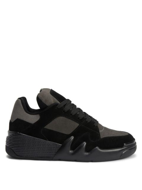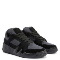 Product Details Low-top lace-up Talon sneakers in suede and denim with rubber sole. - Men's sneakers - Black suede and dark grey cotton denim - High frequency detailing on the label - Black technical fabric inner lining - Black laces - Black rubber sole with logo ORIGIN: ITALY COLOR: GREY