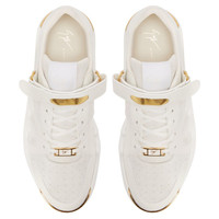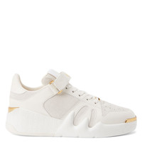 Product Details Low-top 'Talon' sneakers crafted from white leather and suede with technical fabric inner lining and matching cotton laces; the design features an upper-matching Velcro strap embellished with a golden detail, a white rubberised ‘Signature’ on the tongue and a white rubber sole with golden spoilers. White leather and suede White fabric 'Signature' detail with rubber logo White laces White technical fabric inner lining Pink-and-white rubber sole with logo Made in Italy