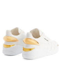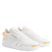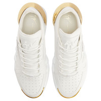Product Details Low-top 'Talon' sneakers crafted from white leather with matching synthetic fabric inner lining and laces. The design features golden metal hardware on the back of the upper, a matching rubberised ‘Label Signature’ detail on the outer side of the shoe, a white lacquered ‘Signature’ detail on the tongue and white rubber soles with golden chromed spoilers. Men's sneakers White leather Golden metal hardware on the back of the upper White lacquered metal 'Signature' White rubberised 'Label Signature' White technical fabric inner lining White rubber sole with golden chromed details and logo Made in Italy