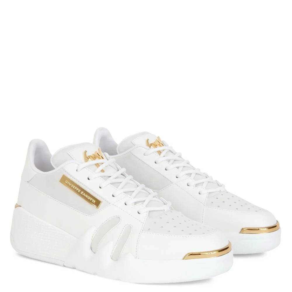 Product Details Talon low-top lace-up sneakers in suede and leather with golden detail on the upper and bottom and rubber sole. - White suede - White leather inserts - Golden metal Signature - Hidden wedge: 2,5 cm - Rubber sole with golden spoiler ORIGIN: ITALY COLOR: WHITE