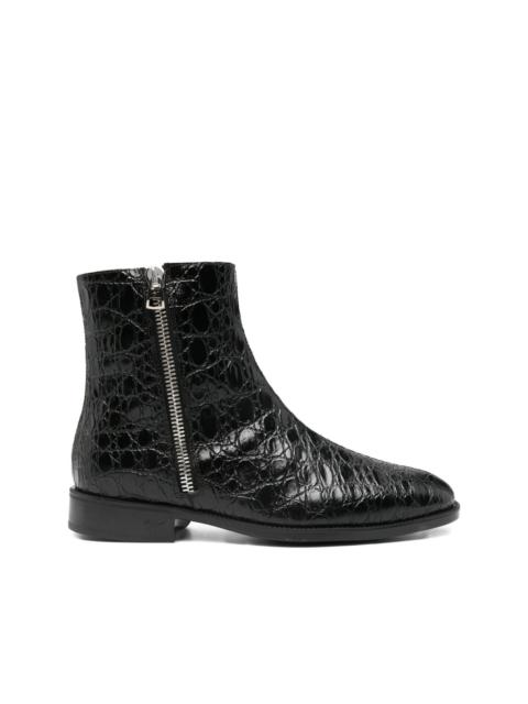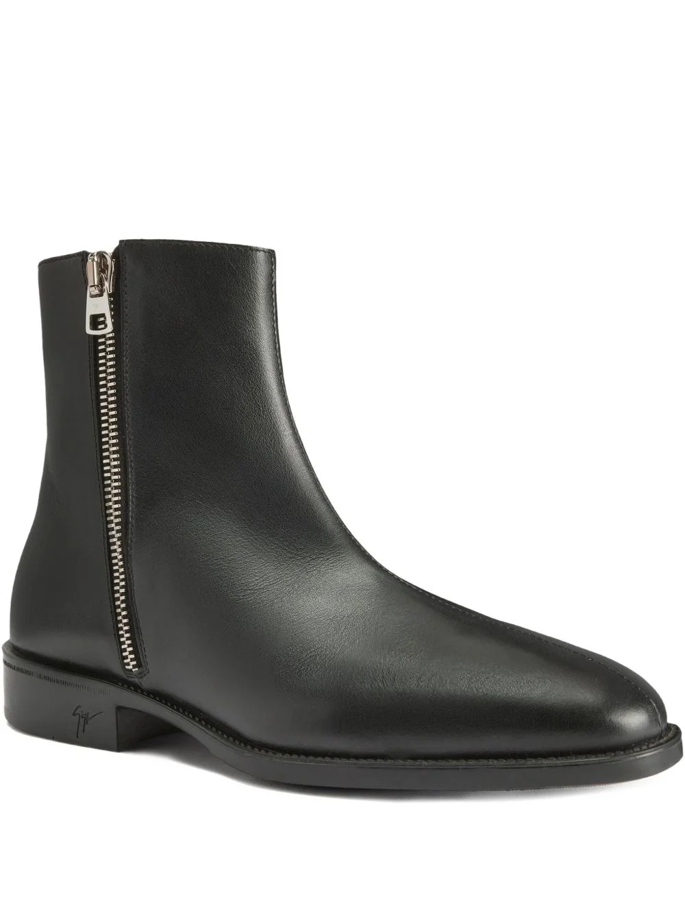 zip-detail leather boots Highlights - Black - Leather upper - Side zip fastening - Pointed toe - Flat heel - Ankle height Made in Italy Composition Outer: Leather 100% Sole: Rubber 100%