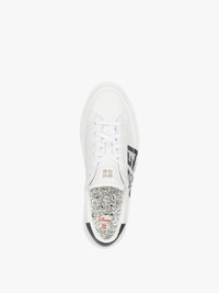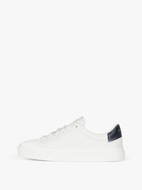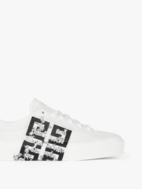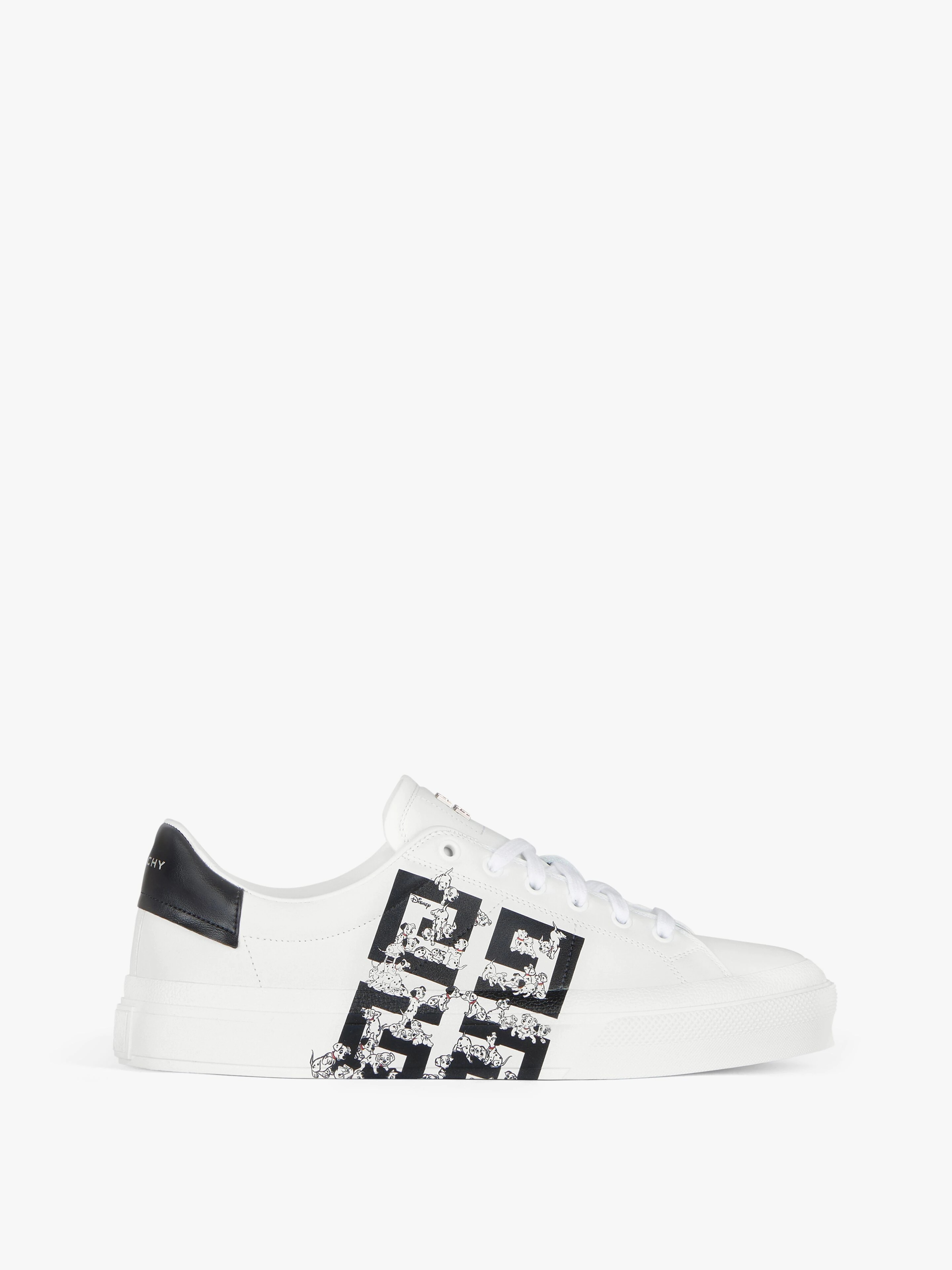 - Sneakers in smooth calfskin leather with 4G Dalmatian print on the side. - Disney x Givenchy Collaboration. - City Sport line. - Black leather insert with silver GIVENCHY signature on the back. - Metal 4G emblem on the tongue. - Raised 4G emblem on the heel. - Calfskin leather insole with Dalmatian print.