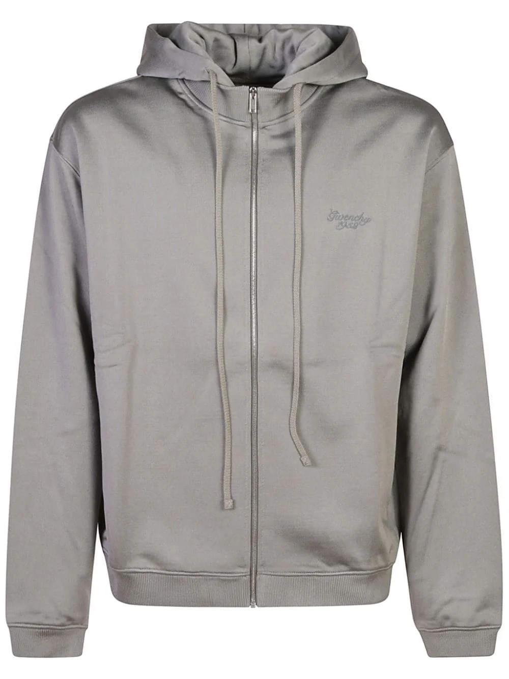 1952 hoodie Highlights - Light grey - Embroidered logo at the chest - Front zip fastening - Drawstring hood - Long sleeves - Two side slit pockets - Ribbed cuffs and hem - Straight hem Made in Italy Composition Viscose 48%, Cotton 31%, Polyester 21%