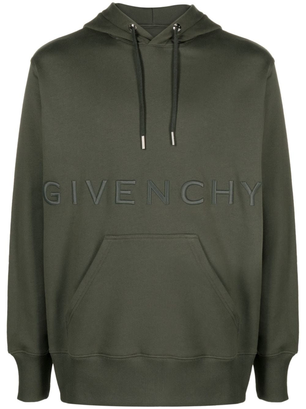 4G-embroidered cotton hoodie Embodying a casual mood, this Givenchy hoodie is cut in a relaxed silhouette. An embroidered logo adorns the front, while the iconic 4G motif appears on the back, lending a recognisable touch. It's finished with a drawstring hood and front pocket. Highlights - Dark green - Cotton - Signature 4g motif - Embroidered logo to the front and rear - Slouchy drawstring hood - Long sleeves - Ribbed cuffs and hem - Front pouch pocket - Straight hem Imported Composition Cotton 100% SIZE & FIT Model measurements Height 6 ft 1 in(1.86 m) Bust/Chest 37.4 in(95 cm) Hips 36.22 in(92 cm) Waist 29.52 in(75 cm) FittingInformation Designed to be unstructured, offering a loose fit throughout Made from a midweight non-stretch fabric, this piece offers minimal elasticity when worn This piece fits true to size – take your usual size