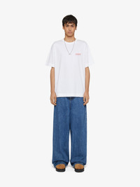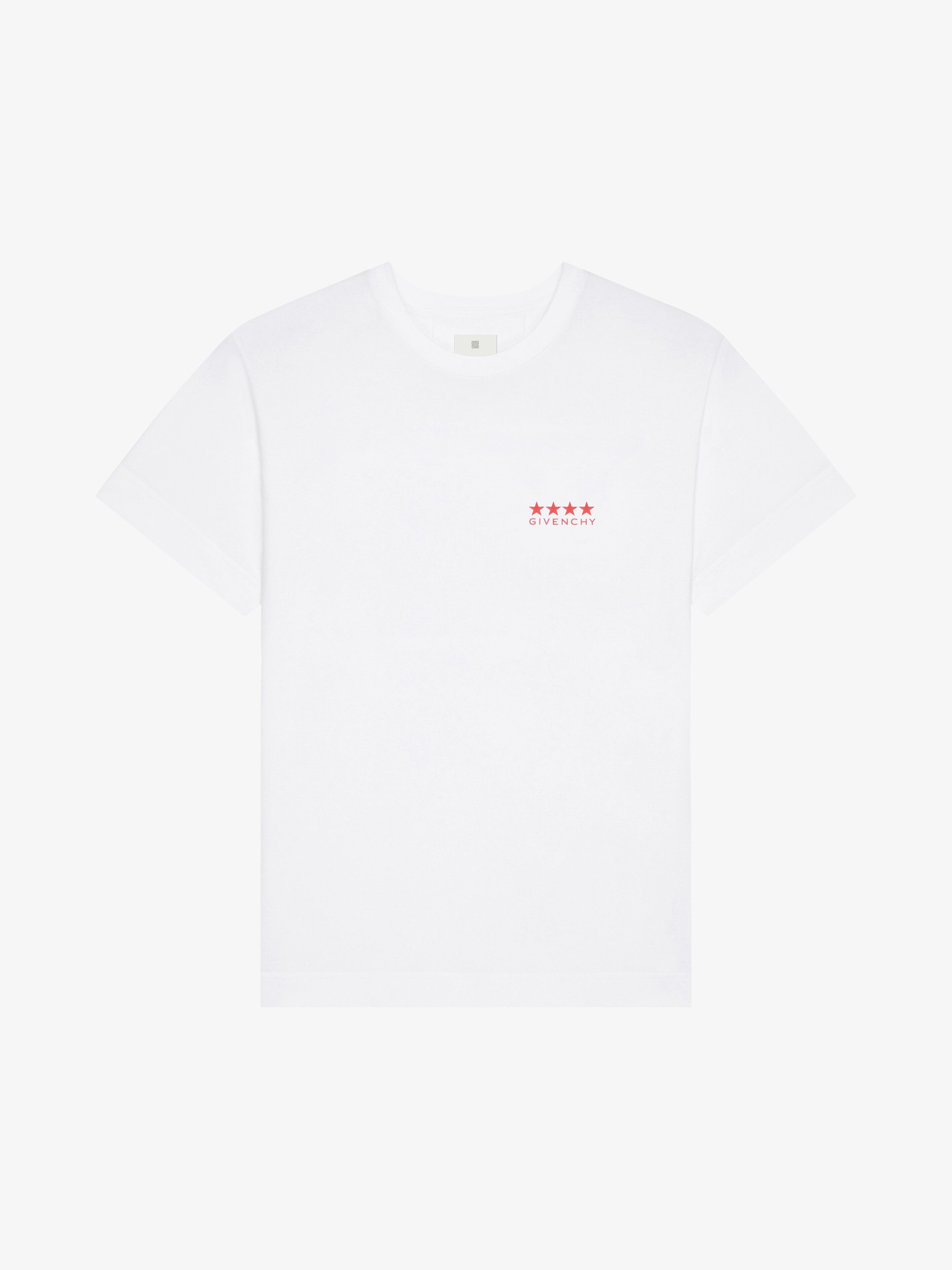 - Short-sleeved t-shirt in cotton. - Crew neck. - Small GIVENCHY signature with star printed on the front. - Oversized 4G emblem printed on the back. - Classic fit. - Model measures 73.2 in and wears a size M.