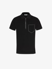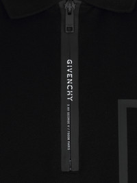 Black cotton piqué polo, zipper with heat-bonded black and white Adresse GIVENCHY band and V-shaped breast pocket trimmed with a heat-bonded solid black band. Small slits on the sides. Slightly longer cut in the back. Product code: BM70TH3006-001 Composition: 100% cotton. Size & Fit This piece has been designed as a slim fit. Other Country of origin: Italy. Maximum wash 30°C, delicate cycle Iron at maximum soleplate temperature (110°C) without steam Do not tumble dry Do not bleach Do not dry clean
