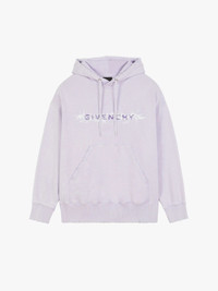 - Hooded sweatshirt in soft brushed felpa with a vintage effect. - Color: lilac. - Purple tufted GIVENCHY signature on the chest with overlaid white barbed print. - One large pocket on the front. - Drawstring with GIVENCHY metal ends on the hood. - Comfortable oversized fit.