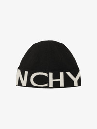 - Beanie in Merino wool jacquard. - White GIVENCHY signature on the cuff.