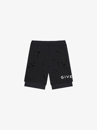 - Bermuda shorts in soft felpa with destroyed effect. - Elastic waist. - GIVENCHY signature printed on the left leg, on the front. - Two side pockets. - One back pocket. - Longer lining.