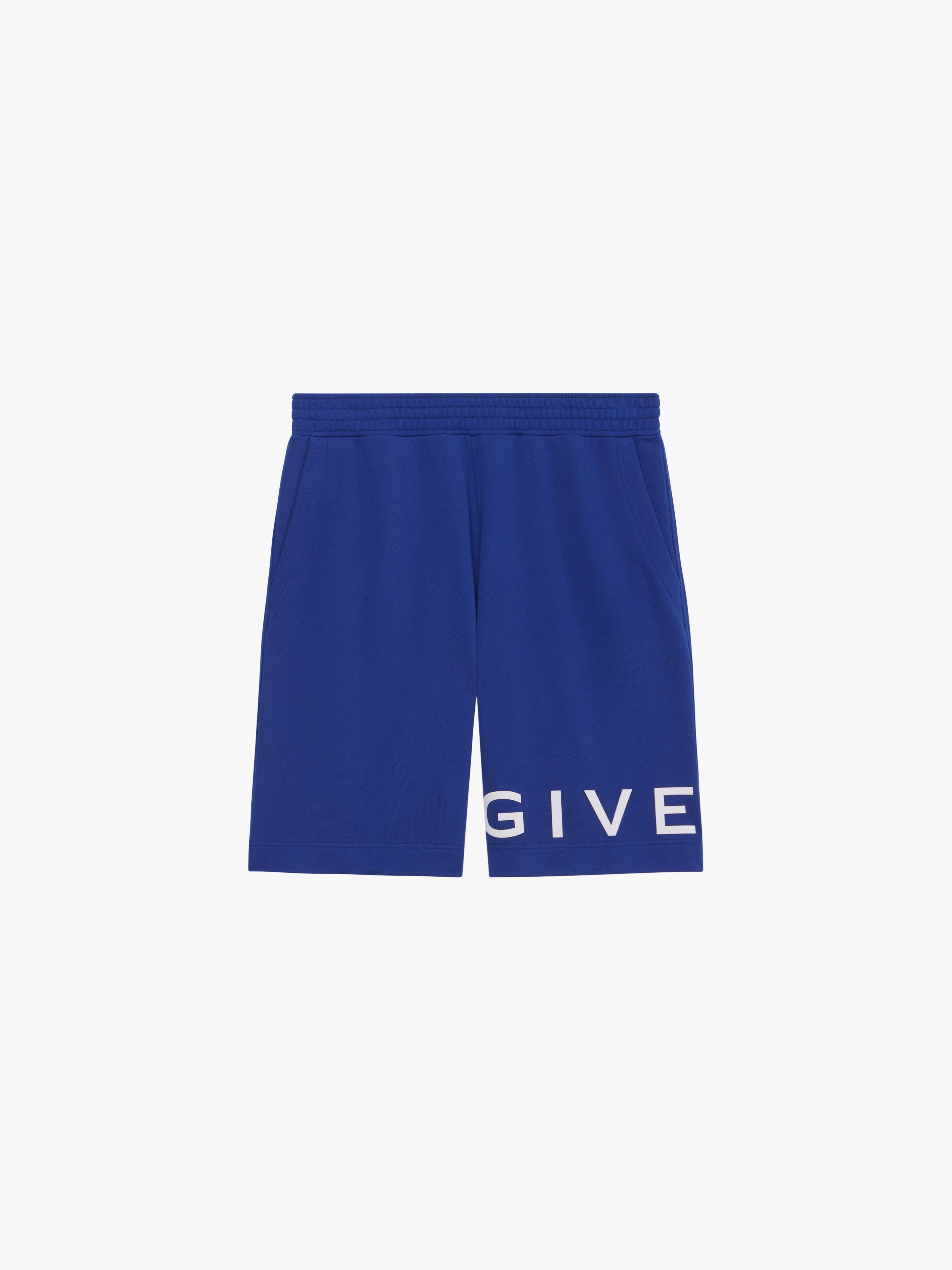 - Bermuda shorts in soft fleece with white GIVENCHY signature heat-bonded on the left leg. - Small white and black 4G Peace emblem heat-bonded on the back. - Two side pockets and one welt pocket on the back. - Comfortable elastic waistband.